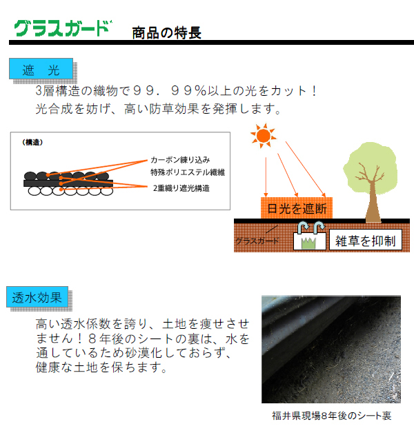 防草シート グラスガード 0.3mm×1m×50m サイズ相談可